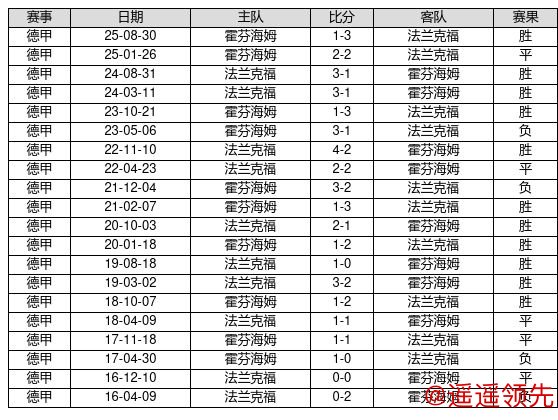 法兰克福 VS 霍芬海姆两队近10年的交战次数为20场,法兰克福11胜5平4负,赢球概率为55.0%,平局概率为25.0%,皇冠体育输球概率为20.0%。