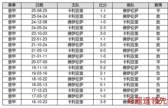佛罗伦萨 VS 卡利亚里两队近10年的交战次数为17场,佛罗伦萨9胜5平3负,赢球概率为52.9%,平局概率为29.4%,输球概率为17.6%。