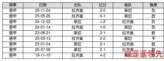 莱切 VS 拉齐奥两队近10年的交战次数为9场,莱切4胜1平4负,赢球概率为44.4%,平局概率为11.1%,输球概率为44.4%。