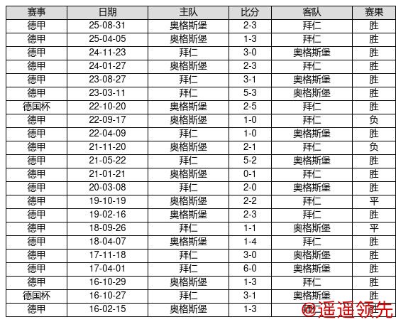 拜仁 VS 奥格斯堡两队近10年的交战次数为22场,拜仁18胜2平2负,赢球概率为81.8%,平局概率为9.1%,输球概率为9.1%。