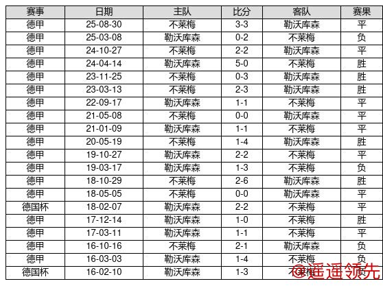 勒沃库森 VS 不莱梅两队近10年的交战次数为20场,勒沃库森6胜9平5负,赢球概率为30.0%,平局概率为45.0%,输球概率为25.0%。