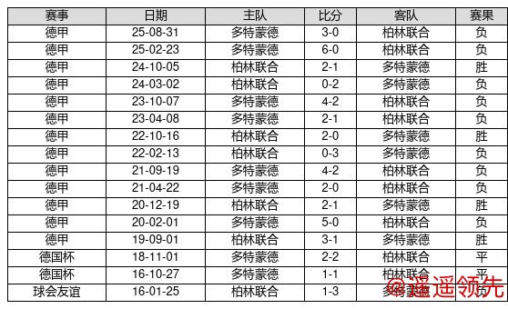 柏林联合 VS 多特蒙德两队近10年的交战次数为16场,柏林联合4胜2平10负,赢球概率为25.0%,平局概率为12.5%,输球概率为62.5%。